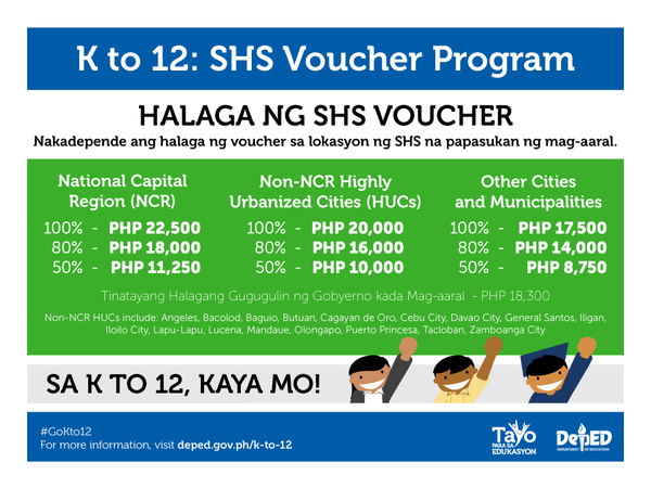 Nakadepende ang halaga ng voucher sa lokasyon ng SHS