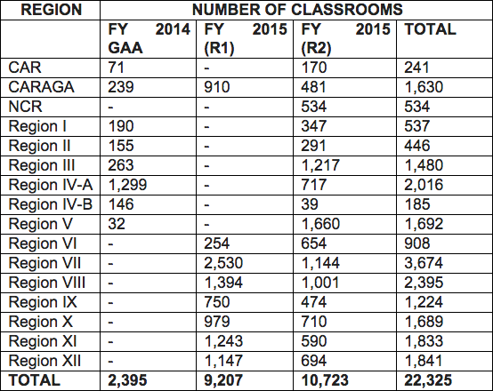 Majority of the 22,325 targeted classrooms will be in Regions VII, VIII, and IV-A. The following is a breakdown of the total number of classrooms targeted per region: