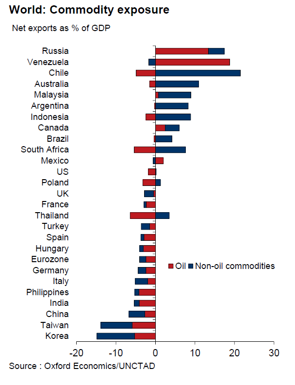 “A slowing China redistributes global economic activity through the commodity channel as much as dampening it,” lead economist Adam Slater wrote in the report.