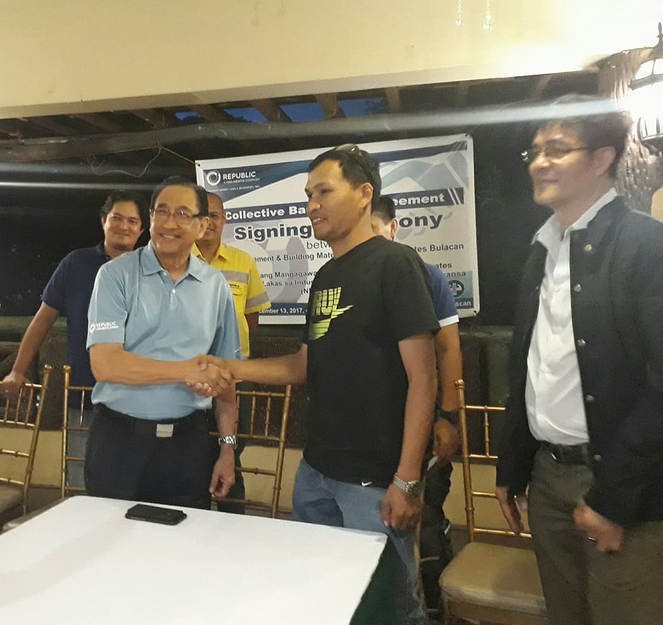 Signing for management were RCBMI President Renato Sunico, the operations manager, two supervisors and the legal officer. Signing for NMBRA-LIKHA were union president Nelson Gabriel, vice president Jimmy Camacho, secretary Christopher Cruz, treasurer Ramil Alibansa, director Jerry Seagan, assisted by LIKHA President Jesus Villamor and VP Angelita Señorin. The signing ceremony took place in Pacific Waves, San Jose Del Monte, Bulacan.