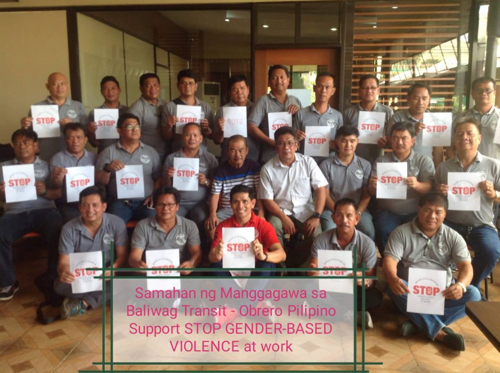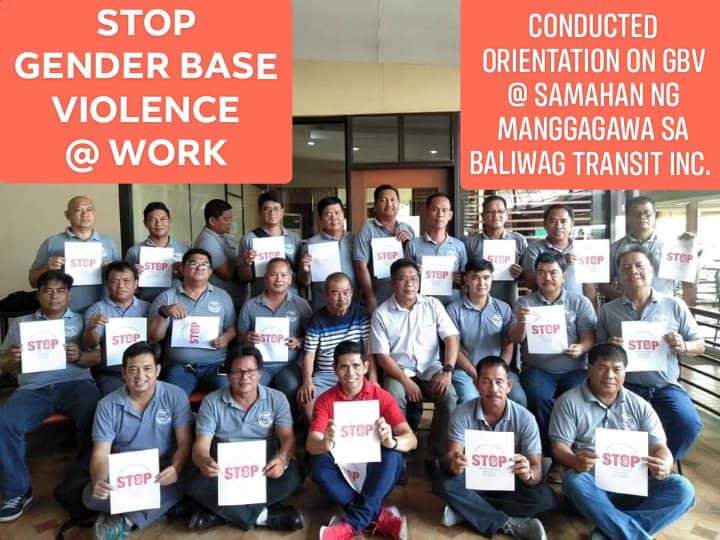 April 3, 2019 – Officers of the 2,500- strong Baliwag Transit Obrero Pilipino Chapter agrees with the employer for curbing gender-based violence (GBV) at work and among its bus passengers. The company, here represented by the owner himself and the company lawyer, services Metro Manila and Central Luzon.